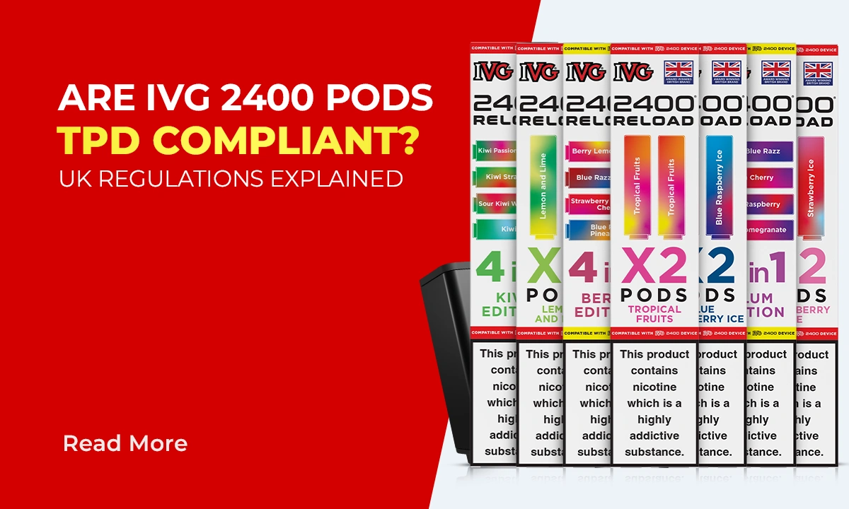 The Tobacco and Related Products Regulations (TRPR), also known as the TPD in Europe, set strict rules for all e-cigarettes and e-liquids sold in the UK. IVG 2400 Reload Pods are fully TPD compliant, meaning they meet these safety and quality standards. Each pod is carefully regulated for nicotine strength, e-liquid capacity, packaging, and labelling. […]